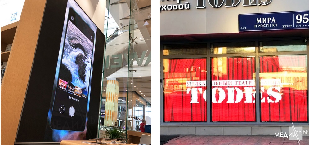 Если речь идёт о витринной рекламе, то она особенно выигрышно смотрится с использованием светодиодных дисплеев. Во-первых, такие экраны можно установить и внутри помещения, и на фасаде. Во-вторых, ЛЕД экраны для витрин работают в самых разных условиях освещения. Их видно и на солнце, и при уличном свете в сумерках.