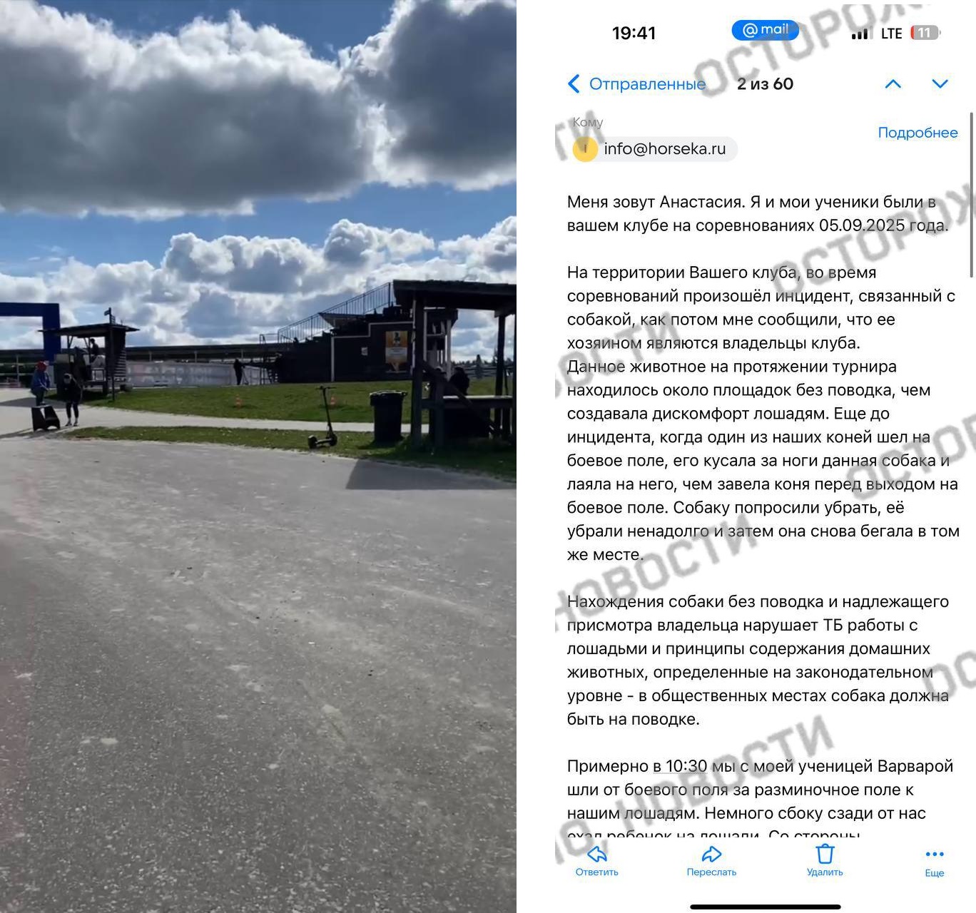 Берейтор Анастасия сообщила «Осторожно, новости», что 5 сентября она вместе со своими учениками приехала в Horseka для участия в соревнованиях. На протяжении всего мероприятия по территории между полями свободно перемещалась собака без поводка. По наблюдениям девушки, ее присутствие создавало дискомфорт для лошадей. Собака лаяла и даже кусала лошадей за нижние конечности. На просьбы убрать животное персонал не реагировал.
