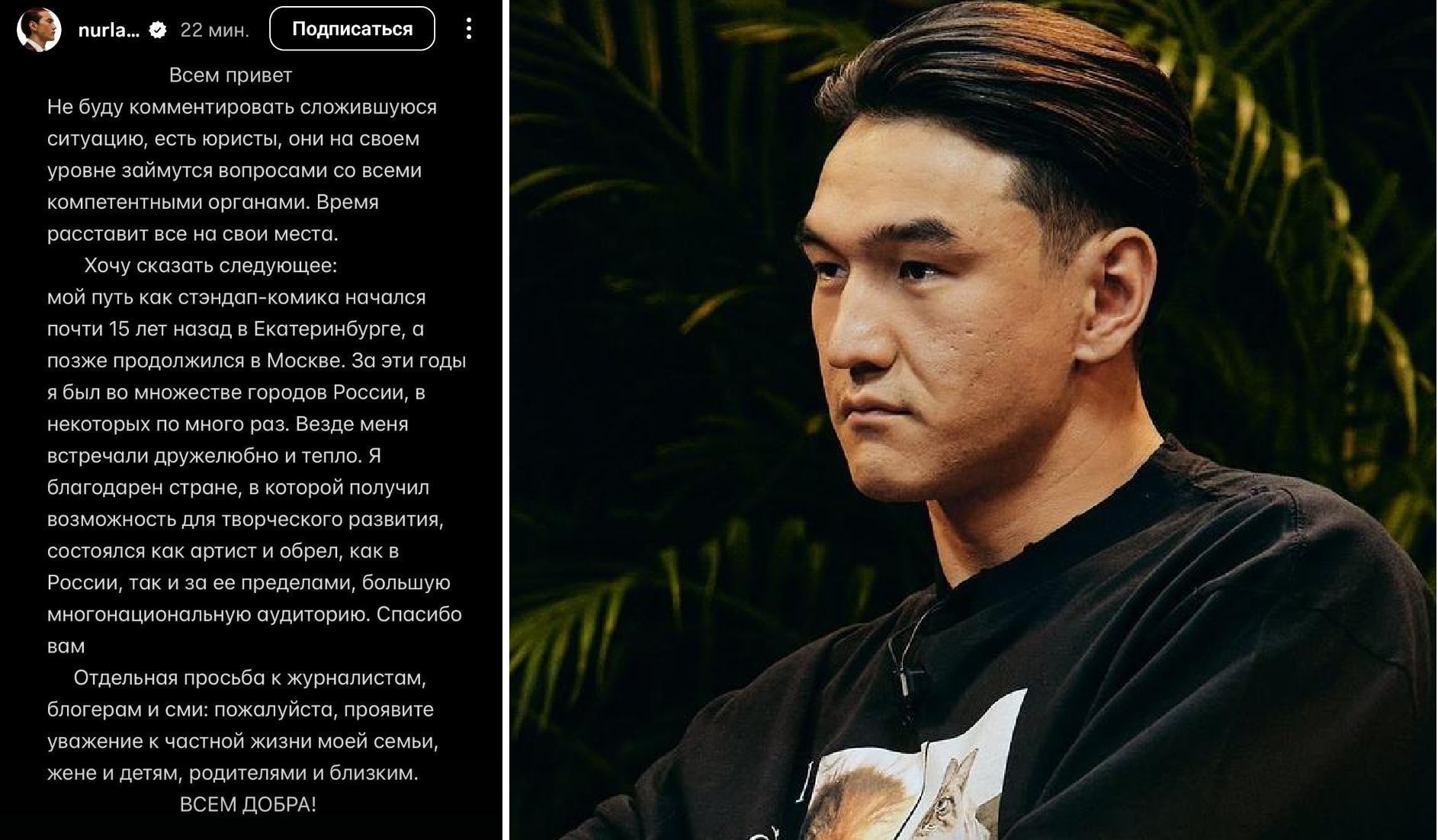 При этом комик отметил, что не намерен публично комментировать детали сложившейся ситуации — все соответствующие вопросы, по его словам, находятся в компетенции юристов. Фраза «время все расставит на свои места» стала своеобразным итогом его краткого, но емкого высказывания, оставив пространство для догадок о дальнейших шагах артиста.